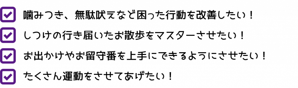 毎日の愛犬の行動を改善するために愛犬にトレーニングしてお家で飼いやすくいたします